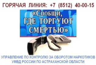 В случае получения информации о возможных местах сбыта наркотиков, организации наркопритонов незамедлительно сообщить в УМВД РФ по Астраханской области по телефону: 8 (8512) 400-015 (круглосуточно, анонимно) для принятия необходимых мер.